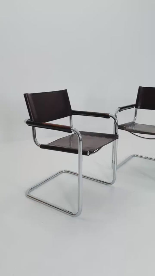 set of 2 Mid century Bauhaus B34 brown leather cantilevered chairs by Mart Stam for Jox Interni italy 1980s