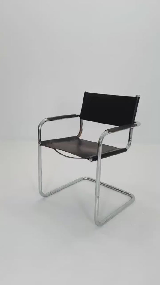 Mid century Bauhaus B34 black leather cantilevered chair by Mart Stam for Jox Interni italy 1980s