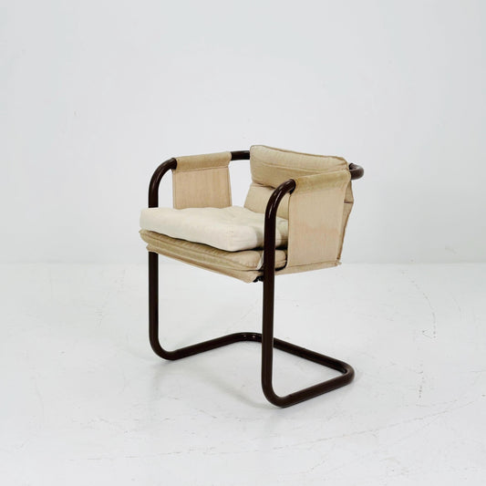 Mid century Bauhaus Lounge Chair in Brown Fabric and Chrome 1980s Germany