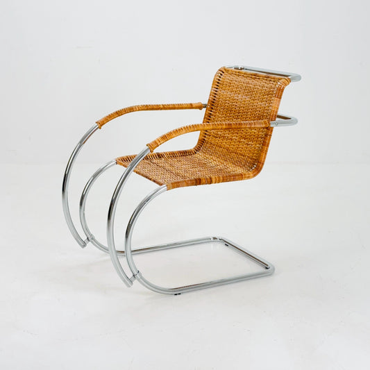 1 of 2 Mid century Bauhaus MR20 Rattan Lounge Chair S533 by Ludwig Mies van der Rohe 1980s