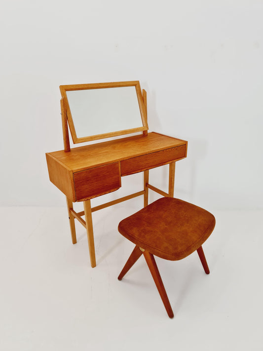 Mid Century Modern Danish Oak vanity table/ make up table by Ateljé glas och trä, Hovmantorp, 1960s