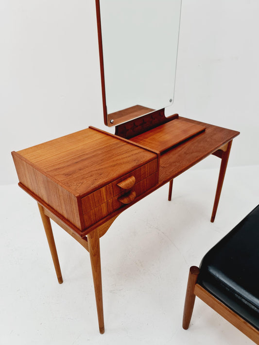 Mid Century Modern Danish Teak vanity table with stool make up table by Fröseke for AB nybrofabriken, 1960s
