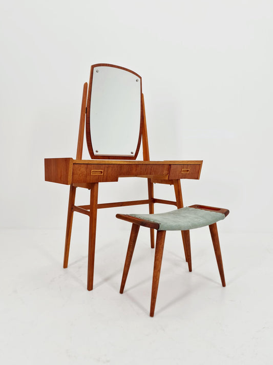Mid Century Modern Danish Teak vanity table, make up table and stool by Edmund Jørgensen Denmark, 1960s