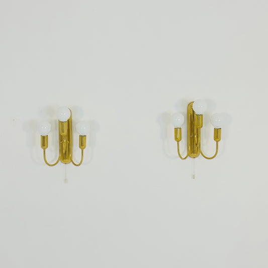 set of 2 Golden brass wall lamps in the style of Schulz, 1970s,Germany