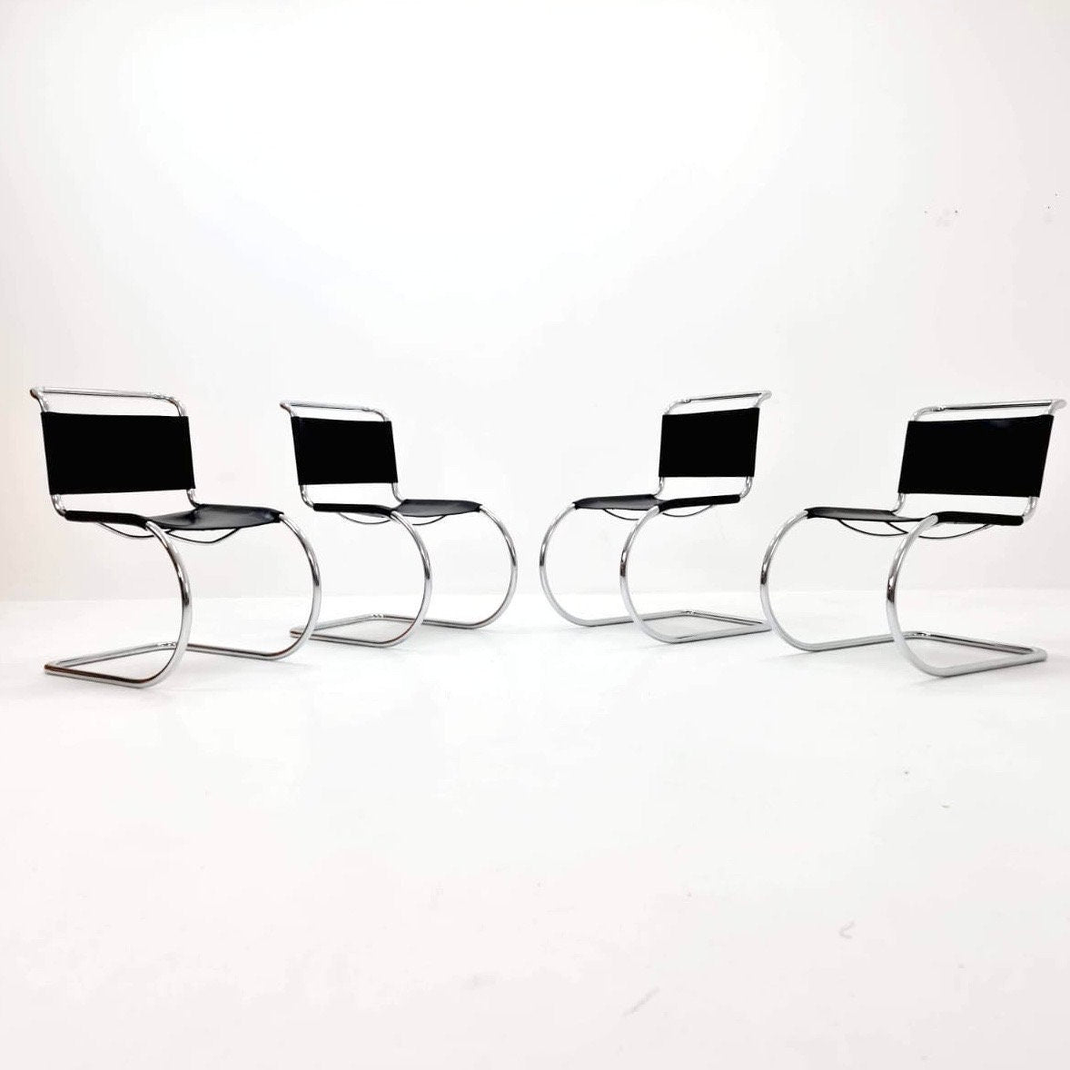 Set of 4 MR10 lounge black leather chairs design by Ludwig Mies van der Rohe , 1980s Italy