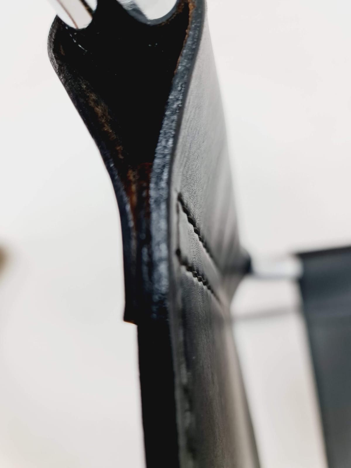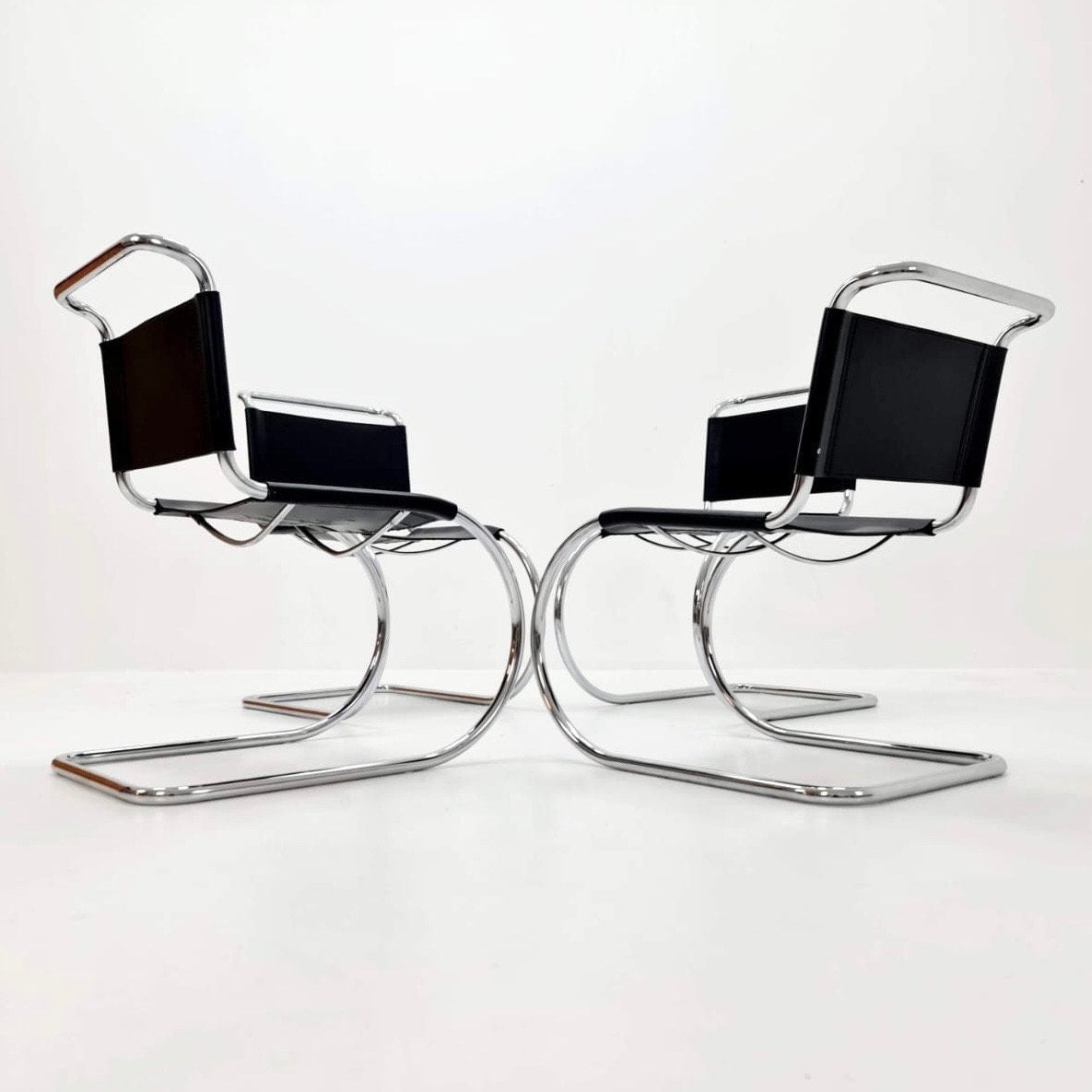 The "Weissenhof Chair", also known as the MR 10, was designed in 1927 by the German-American architect Ludwig Mies van der Rohe (1886-1969). Ludwig Mies van der Rohe is considered one of the most important modernist architects. His most important projects include the multi-family houses in the Weissenhof settlement in Stuttgart, the German pavilion for the 1929 World Exhibition in Barcelona, and the Villa Tugendhat in Brno. the cantilever chair date from the 1980s . Chrome-plated tubular steel frame, seat and backrest made of thick, black-colored leather. Immaculate condition. Leather parts with slight signs of wear, but without deep scratches and without open seams.